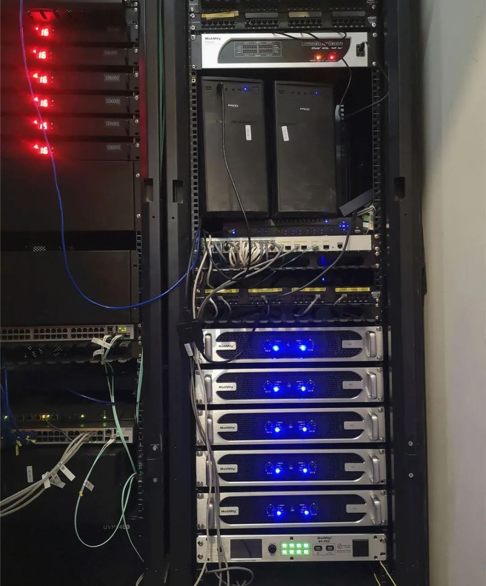 整個(gè)擴(kuò)聲系統(tǒng)搭配H系列功放、MA1610-F調(diào)音臺(tái)、Stride8.8處理器、SC-902電源時(shí)序器,保證了高品質(zhì)的聲效輸出、保持了系統(tǒng)的穩(wěn)定運(yùn)行,更方便了人員的日常管理與使用。