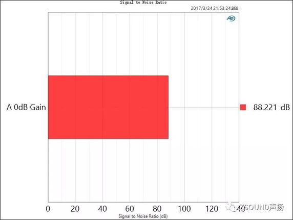 包含了總諧波失真和本底噪音兩項關鍵指標,可以反映出設備的A/D,D/A和模擬電路的用料檔次的設計水平。