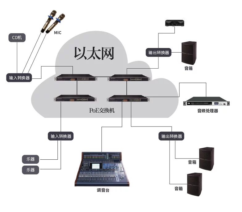 Dante數(shù)字音頻傳輸技術(shù),是一種專業(yè)、無壓縮的、基于3層的IP網(wǎng)絡(luò)的新一代網(wǎng)絡(luò)音頻傳輸技術(shù)。它和傳統(tǒng)的音頻傳輸有著很大的區(qū)別,它僅使用一條網(wǎng)線就可以傳輸數(shù)字音頻、供電和控制同時(shí)進(jìn)行,省去了極大的建設(shè)成本,減少了不必要的人力和財(cái)力。
