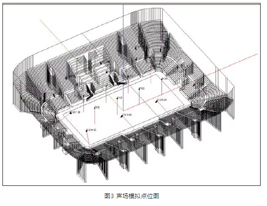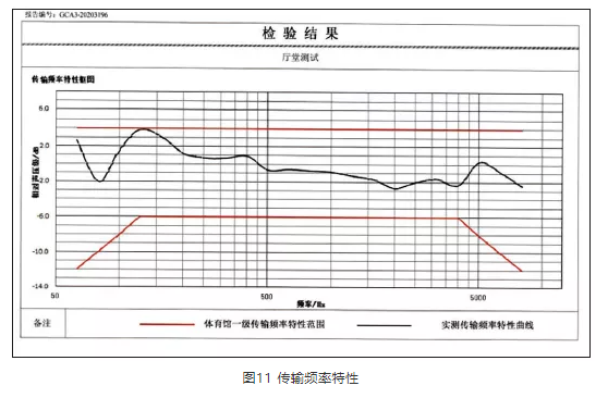 施工完畢后,進行了現(xiàn)場實測,測點如圖10所示。經(jīng)現(xiàn)場測試,擴聲系統(tǒng)聲壓級可基本達到設(shè)計值,其他測量結(jié)果見圖11、表2—表4。測試結(jié)果反映,該項目達到設(shè)計目標及行業(yè)相關(guān)標準指標。