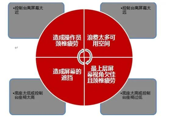 某公司大屏系統(tǒng)遵循以上兩個(gè)原則,所計(jì)算出的大屏底座高度及操作臺(tái)與屏幕的距離,符合人體工程學(xué)設(shè)計(jì),讓客戶有最舒適的觀看角度、最佳的觀看效果。