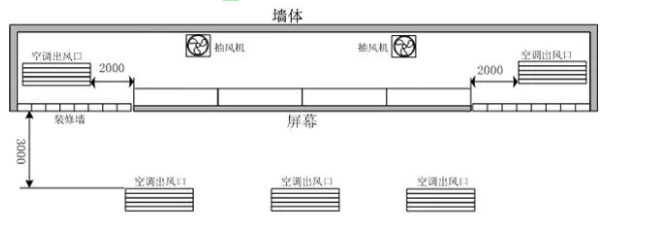 2) 位于大屏幕顯示系統(tǒng)維修通道內(nèi)的空調(diào)(中央空調(diào)或柜式空調(diào)),其出風(fēng)口位置應(yīng)盡量遠(yuǎn)離后側(cè)箱體,并且出風(fēng)口的冷風(fēng)絕對(duì)不能對(duì)著屏幕直吹,要朝遠(yuǎn)離屏幕的方向吹,以避免屏幕冷熱不均勻而損壞和結(jié)露現(xiàn)象。